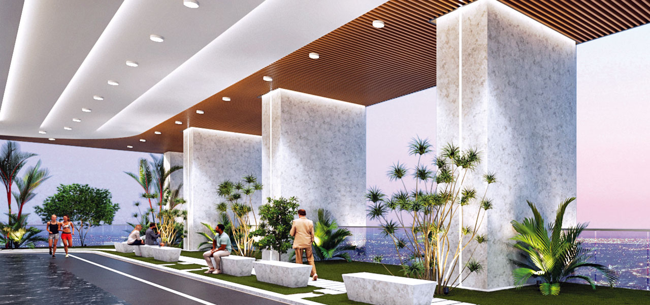 ឧទ្យានដែលទទួលស្វាគមន៍អ្នកស្នាក់នៅ អាចរត់ត្រឹកៗ ដើរលេង និងអានសៀវភៅយ៉ាងងាយស្រួលក្នុងលំហអាកាសដ៏ល្ហល្ហេវទទួលពន្លឺព្រះអាទិត្យយ៉ាងកក់ក្ដៅច្រើន។