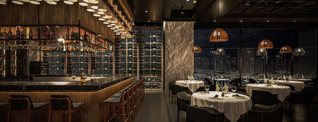 ភោជនីយដ្ឋានដែលអាចទទួលទានម្ហូបអាហារបណ្ដើរ មើលទេសភាពស្អាតៗពីជាន់ទី 77 លាតសន្ធឹងនៅចំពោះមុខបណ្ដើរ តាំងពីពេលព្រឹក ពេលថ្ងៃ រហូតដល់ពេលល្ងាច។