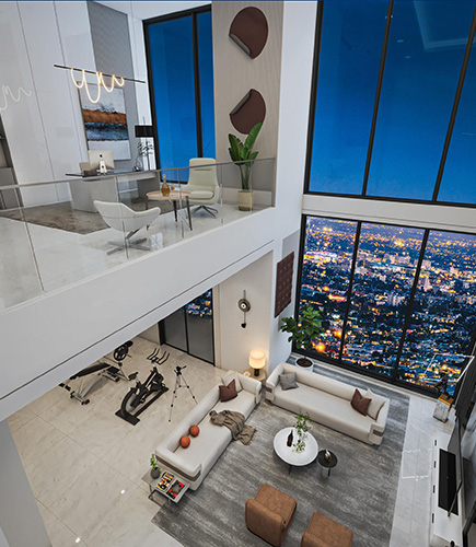 Facilities: Main floor 50F, Sky Pool 77F, Inner Pool 49F, KIDS Pool 49F, Swimming Pool 27F, Sky Bar 77F, Sauna 49F, Public Bath 49F, Spa 49F, Fitness Gym 27F, Kid’s Play Space 11F,Pool Bar (billiard room) 11F, Table tennis 11F, 2 lanes of bowling on 11F,Karaoke Box x 4R on 11F, Cafe & Lounge on 50F, Wine Cooler on 50F, Mini Shop on 50F, Business Room on 50F, Oasis (Park) on 26F, Observatory on 78F, Laundry Service on 49F, Garbage Station on all floors, Nurses’ Station 11th floor, parking lot B1~10th floor